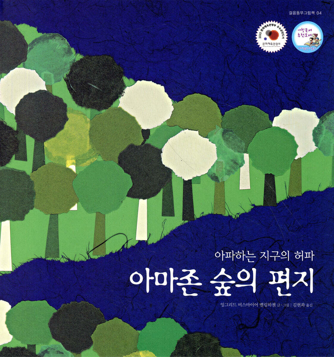 우주에선 점처럼 보였던 지구가 점점 더 가까워지자 남아메리카 대륙의 푸르름이 한 눈에 들어와. 그리고 좀 더 깊숙이 들어가면 아마존 열대 우림의 숲과 강, 그 안에 사는 동물과 식물이 차례차례 모습을 드러내지. 이 책은 마치 거대한 카메라 렌즈를 들이대고 우주에서부터 아마존 밀림의 한 장면까지 서서히 클로즈업하는 것처럼 구성되어 있어. 브라질에서 나고 자란 작가는 아마존의 아름다움을 콜라주 방식으로 표현하고 싶었다고 해. 화려한 색감, 단순하면서도 깊이 있는 그림을 보다보면 머릿속에선 아마존이 얼마나 처절하게 아름다운 곳인지 상상하게 되지. 책의 마지막 장을 덮는 순간 우리는 아마존의 목소리를 듣게 될 거야. "이제는 아마존을 구하기 위해 무언가 해야 한다" 목소리를.