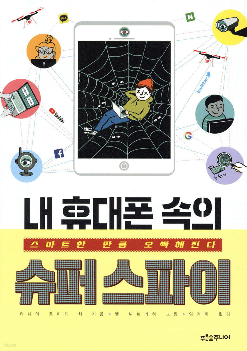 요즘 많은 어린이 친구들이 인플루언서가 되고 싶어 해. 내가 좋아하는 분야의 전문가가 되어 유튜브나 소셜 네트워크 서비스(SNS)에서 영향력 있는 활동을 하는 사람 말이야. 인플루언서는 연예인처럼 화려하고 많은 사람의 주목을 받는 일이야. 그런데 이것이 독이 되기도 해. 나의 소소한 일상이 대중에게 공개되면서 사생활을 보호받지 못할 수 있거든. '내 휴대폰 속의 슈퍼 스파이'는 공공장소에 깔려 있는 CCTV를 비롯해 RFID, 지문 인식 등 세상의 수많은 기술이 우리의 정보를 파악하는 방법과 과정을 소개하고 있어. 세상의 모든 스마트 기기들이 우리의 얼굴과 목소리, 지문 등으로 순식간에 우리가 누구인지 알아내는 과정을 이해하다 보면 우리가 개인정보를 조금 더 소중히 다뤄야 하는 이유를 깨달을 수 있을 거야. 어른들도 잘 모르는 IT 감시 사회의 실태를 생생하게 탐구해 보자.