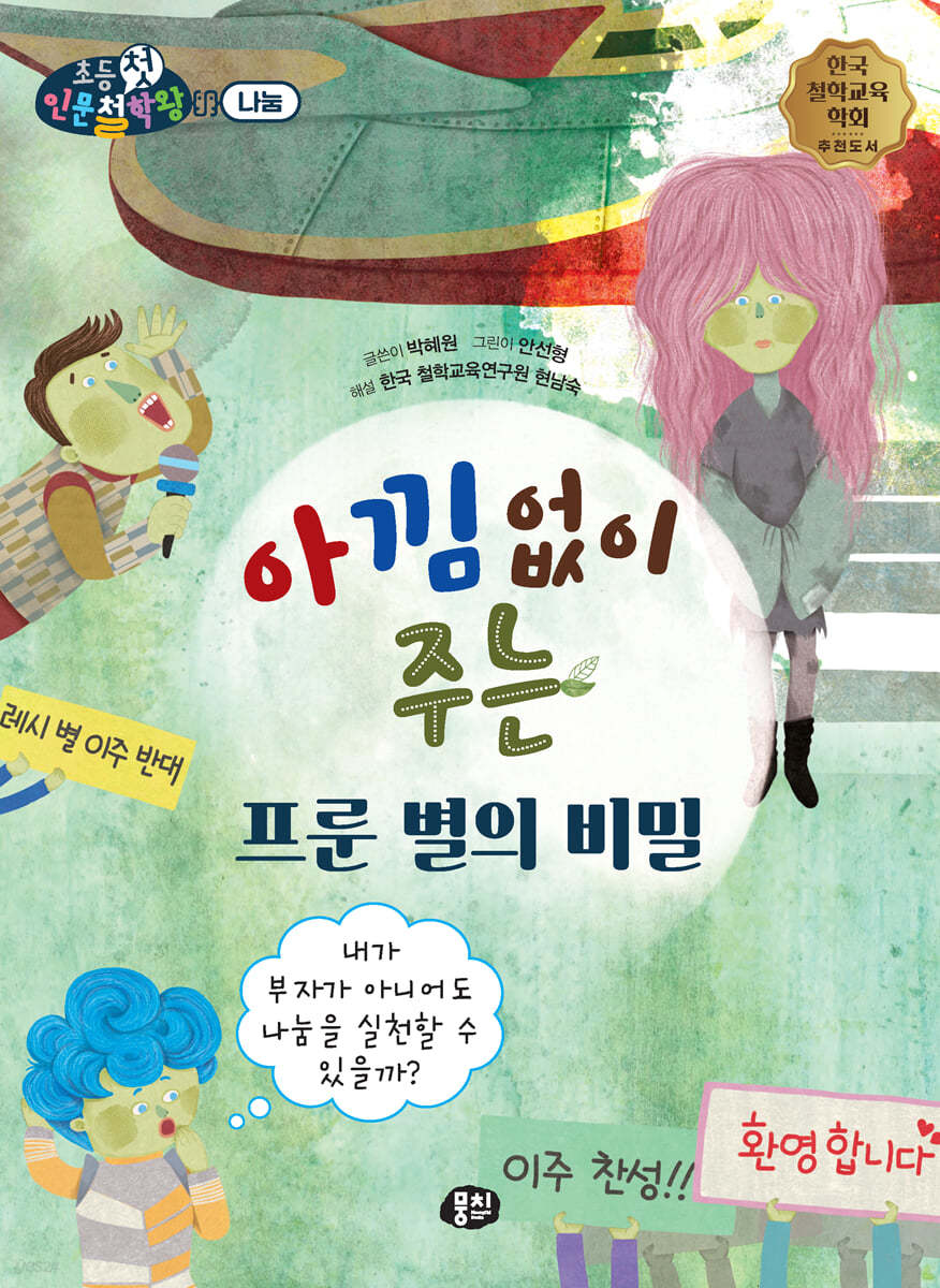 어느 날 레시 별 사람들이 프룬 별로 이주해 와. 이들은 "배고파, 먹을 것 좀 줘"라며 프룬 별에 메시지를 보내지. 그런데 갑자기 등장한 레시 별 사람들을 어디까지 도와줘야 할까. 그들의 모든 것을 책임지려고 하니 프룬 별 사람들 사이에서는 갈등이 발생해. 서로 의견이 달랐거든. 사실 레시 별에서 온 사람들은 프룬 별이 살기 어려울 때 레시 별로 간 사람이야. 그래서 도와주는 것을 꺼리는 사람들도 있었어. 그렇다면 배고파서 먹을 것이 필요한 레시 별 사람들에게 프룬 별 사람들은 얼마나 나눠야 할까? 서로 갈등하지 않고 모두가 행복하게 살기 위한 조건은 무엇일까? 이 책을 읽다 보면 프룬 별 사람들의 고민이 우리가 사는 세상의 고민과 다르지 않다는 걸 알 수 있을 거야.