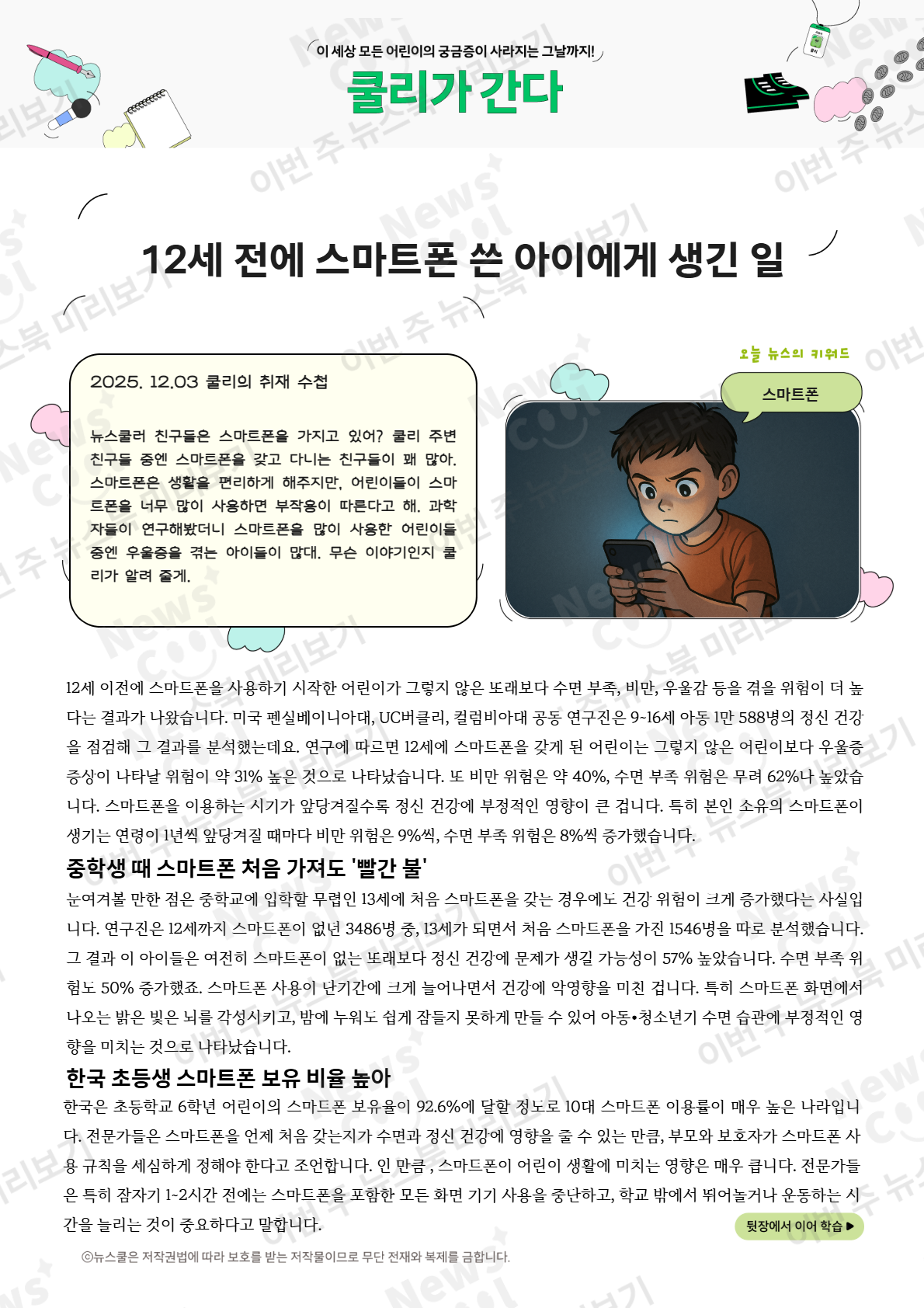 [쿨리가 간다] 12세 전에 스마트폰 쓴 아이에게 생긴 일